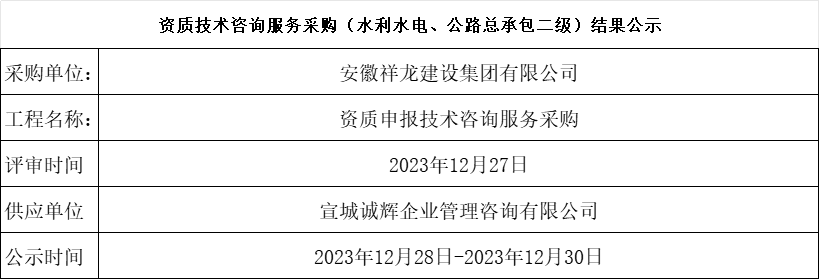 資質技術咨詢服務采購(水利水電、公路總承包二級)結果公示